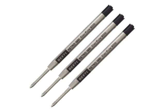 Retro 51 Black Ballpoint Easy Flow 9000 Refill - 3 pack